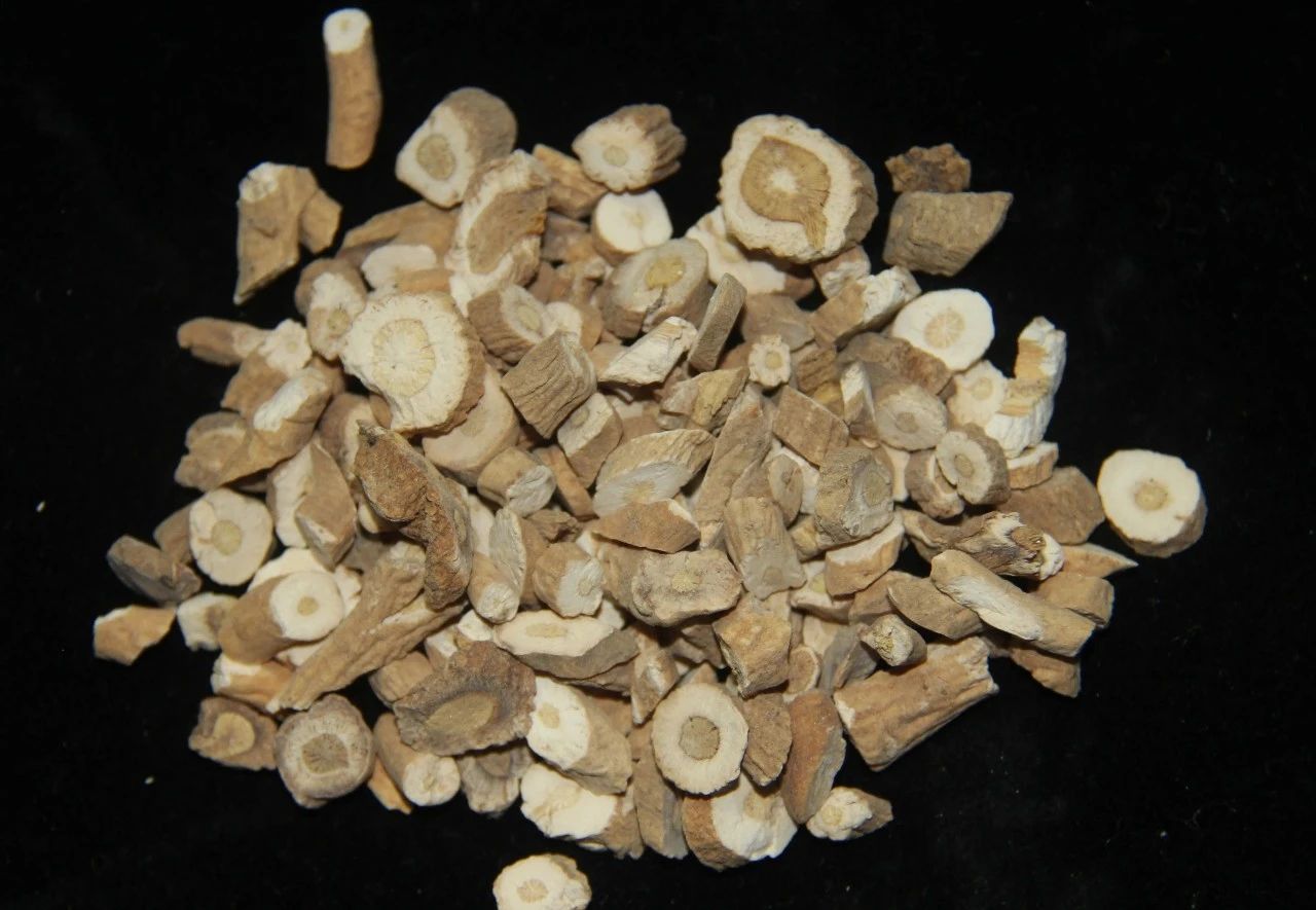 板藍(lán)根是十字花科植物菘藍(lán)的干燥根部。主要在河南省原陽(yáng)縣等地種植,是當(dāng)?shù)氐奶厣a(chǎn)品。每年秋季采收,去除泥土和沙子,曬干后切成厚片。以切面皮部呈黃白色、木部呈黃色的為佳。