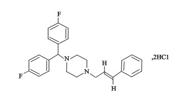 本品主要成份為:鹽酸氟桂利嗪。其化學(xué)名稱為:(E) ―1―[雙(4―氟苯基)甲基] ―4―2(2―丙烯基―3―苯基) ―哌嗪二鹽酸鹽。